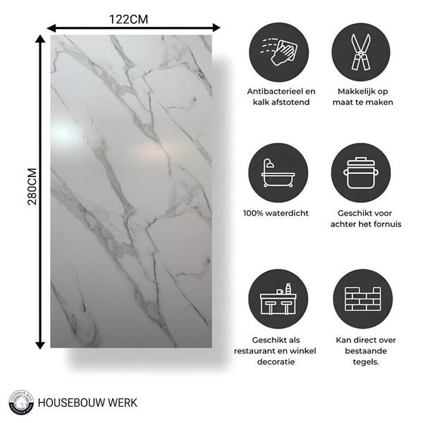 Eenvoudige Installatie en Makkelijk in Gebruik: Het paneel is lichtgewicht en kan eenvoudig worden gesneden met een mesje voor een perfecte pasvorm. De installatie is snel en probleemloos met behulp van siliconekit. In no-time geef je je ruimte een elegante, luxueuze afwerking die niet alleen mooi is, maar ook praktisch en duurzaam.